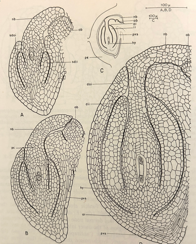 ‘Development of Ovule and Integuments in Euphorbia milii and Codiaeum variegatum,’ Phytomorphology 24 (3, 4), 1974: 280-96 (with F. Bouman).